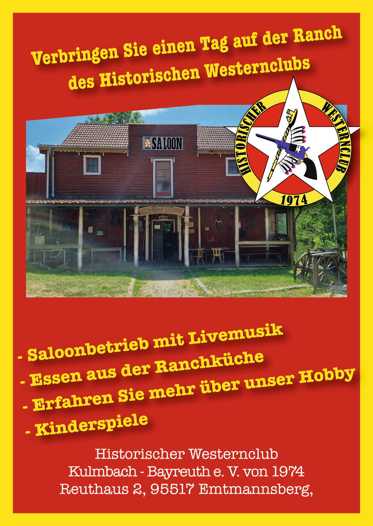 Der Verein wurde 1974 in Kulmbach gegründet und ist seit 1979 auf unserer "Ranch" im Reuthaus 2 , 95517 Emtmannsberg beheimatet.